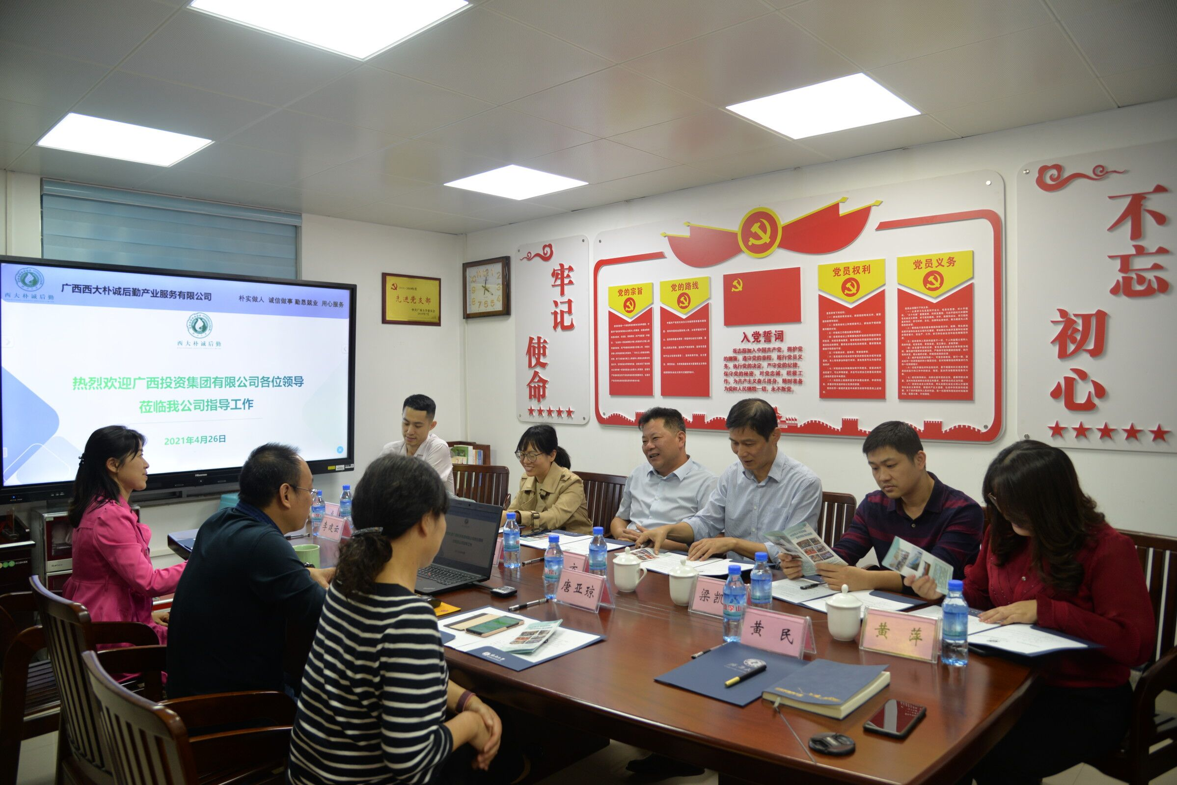 2021年4月26日下午,廣西廣投智慧物產(chǎn)商業(yè)管理有限公司執(zhí)行董事劉戰(zhàn)勝、副總經(jīng)理梁凱榮,廣西投資集團(tuán)壁華物業(yè)有限公司執(zhí)行董事孔方、物業(yè)投資大廈項(xiàng)目辦主任黃萍,廣西廣投醫(yī)藥健康產(chǎn)業(yè)集團(tuán)商旅運(yùn)服專職辦副主任周茜等一行到我司考察交流,公司總經(jīng)理孔宇等領(lǐng)導(dǎo)出席座談。會(huì)上雙方就餐飲服務(wù)等工作進(jìn)行了深入交流,會(huì)后參觀了我司食品檢測(cè)室、凈菜加工中心、秀苑餐廳、東苑餐廳等。